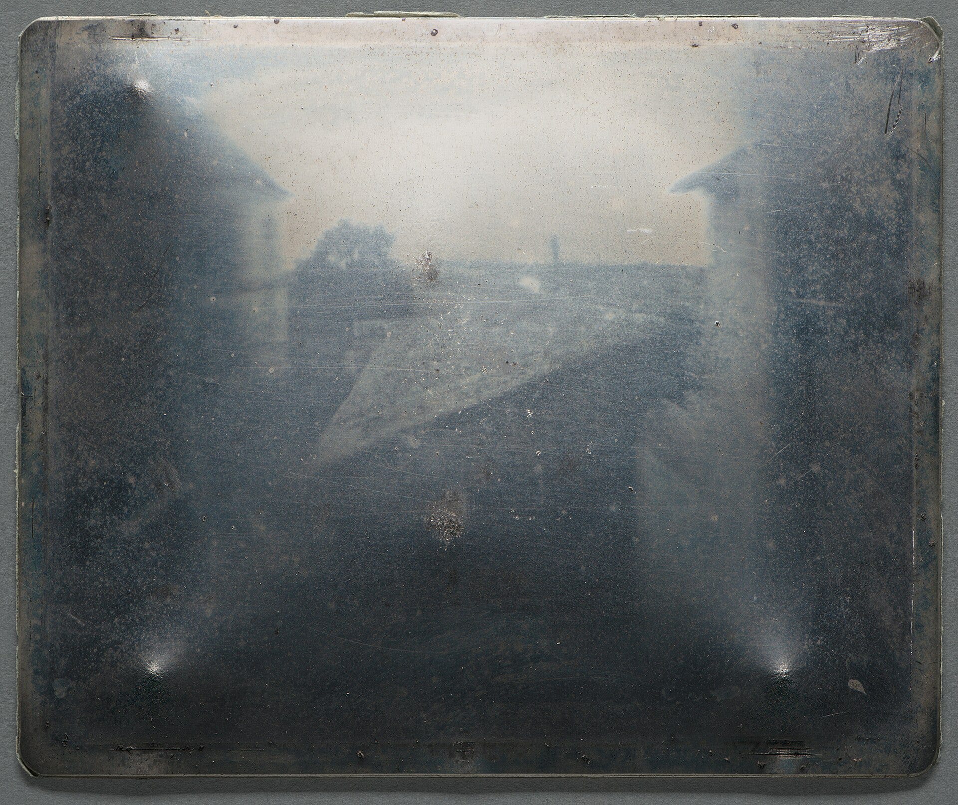 Nicéphore Niépce’s original plate of ‘View from the Window at Le Gras’, showing rooftops visible from a second-story bedroom window